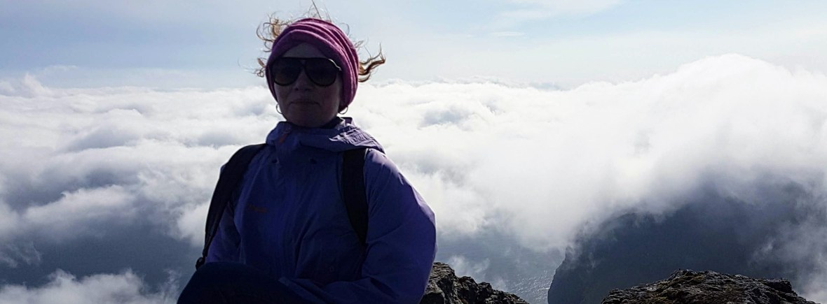 Sjálvandi var eg eitt sindur seinkað akkurát hendan morgunin, eg skuldi skundað mær. Eg skuldi fylgjast við tveimum øðrum fjalladamum. Men eg var skjótt greið yvir, at meira tempo skuldi á, um eg skuldi klára judofinaluna í Havn. Eg koyrdi turbo á, og skjótt hvurvu hinar báðar … ella var tað eg í mjørkaflókunum, ið rókust aftur og fram. Eg steðgaði av og á at vita, um eg sá nakað til tær. Men tær vóru sporleyst horvnar. Eg sá tær ikki aftur, fyrr enn eg hevði verið úti á Ennibergi, har eg var so heppin at hitta ein ungan mann úr Kenya, ið hjálpti mær at próvfesta, at eg hevði verið á hægsta punktið á Ennibergi við fleiri myndatøkum. Síðan fór eg eftir smølu rókini, onkustaðni á øllum fýra, við tunguni mitt í munninum, tí traðkaði eg skeivt og gleið oman, kom eg ongan veg til nakrað judofinalu.